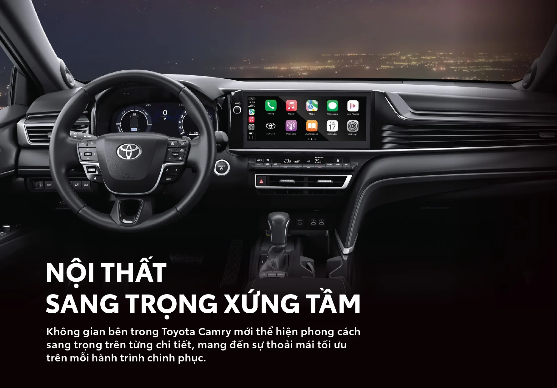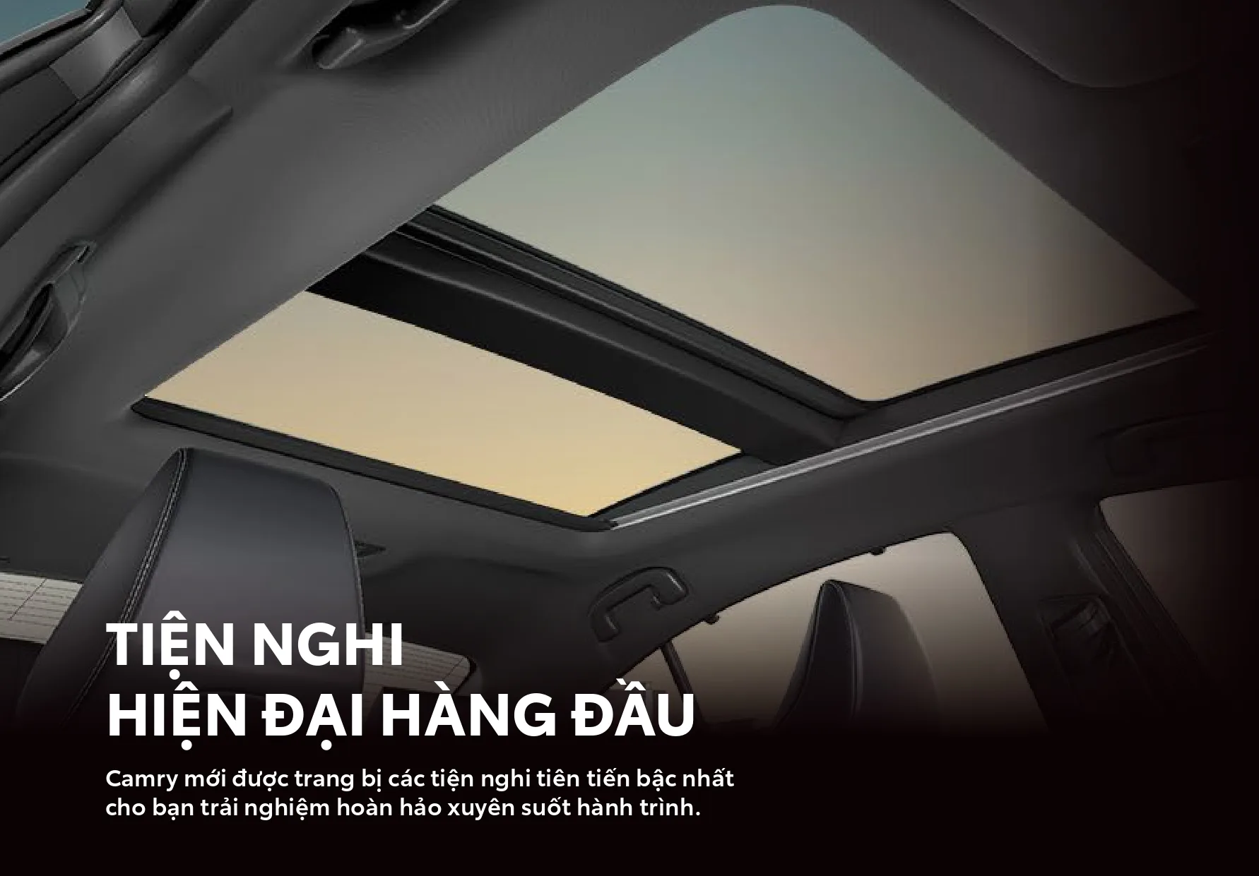 Nội thất Camry thế hệ mới vẫn giữ phong cách hiện đại, các cụm nút giờ đây được sắp xếp gọn gàng, khoa học hơn. Cụm cần số, chỗ để cốc vẫn ở vị trí cũ. Vô-lăng thiết kế mới, nút chức năng được sắp xếp lại. Cửa sổ trời trên Camry thế hệ mới là loại toàn cảnh.