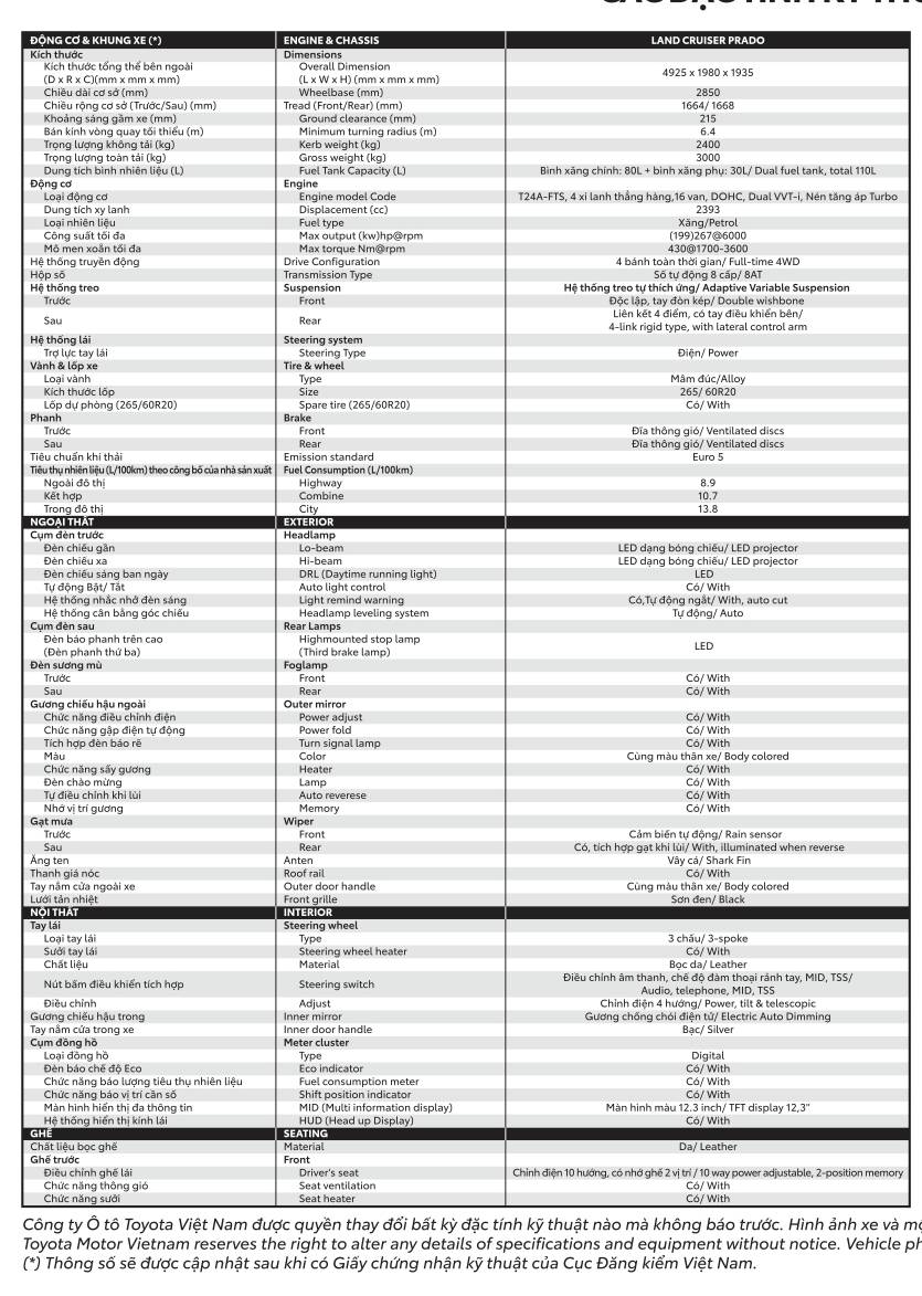| Land Cruiser Prado: | 3.480.000.000 ₫ |