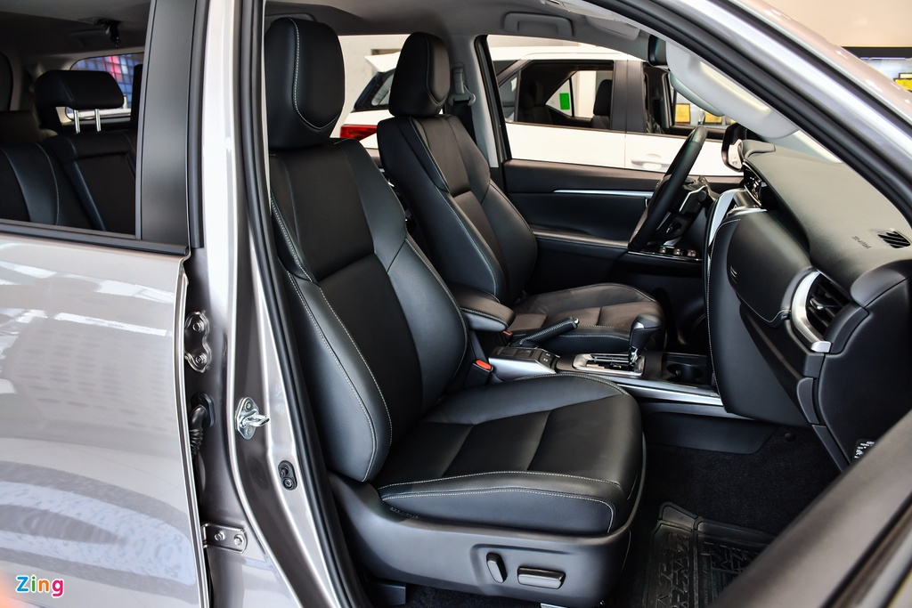 Trục cơ sở của Fortuner vẫn giữ nguyên ở mức 2745 mm, do đó không gian để chân ở các hàng ghế không có sự thay đổi. Chỉ có duy nhất phiên bản tiêu chuẩn 2.4 4×2 MT có ghế ngồi bọc nỉ trong khi các bản còn lại đều có ghế ngồi bọc da, tạo sự êm ái, sang trọng.