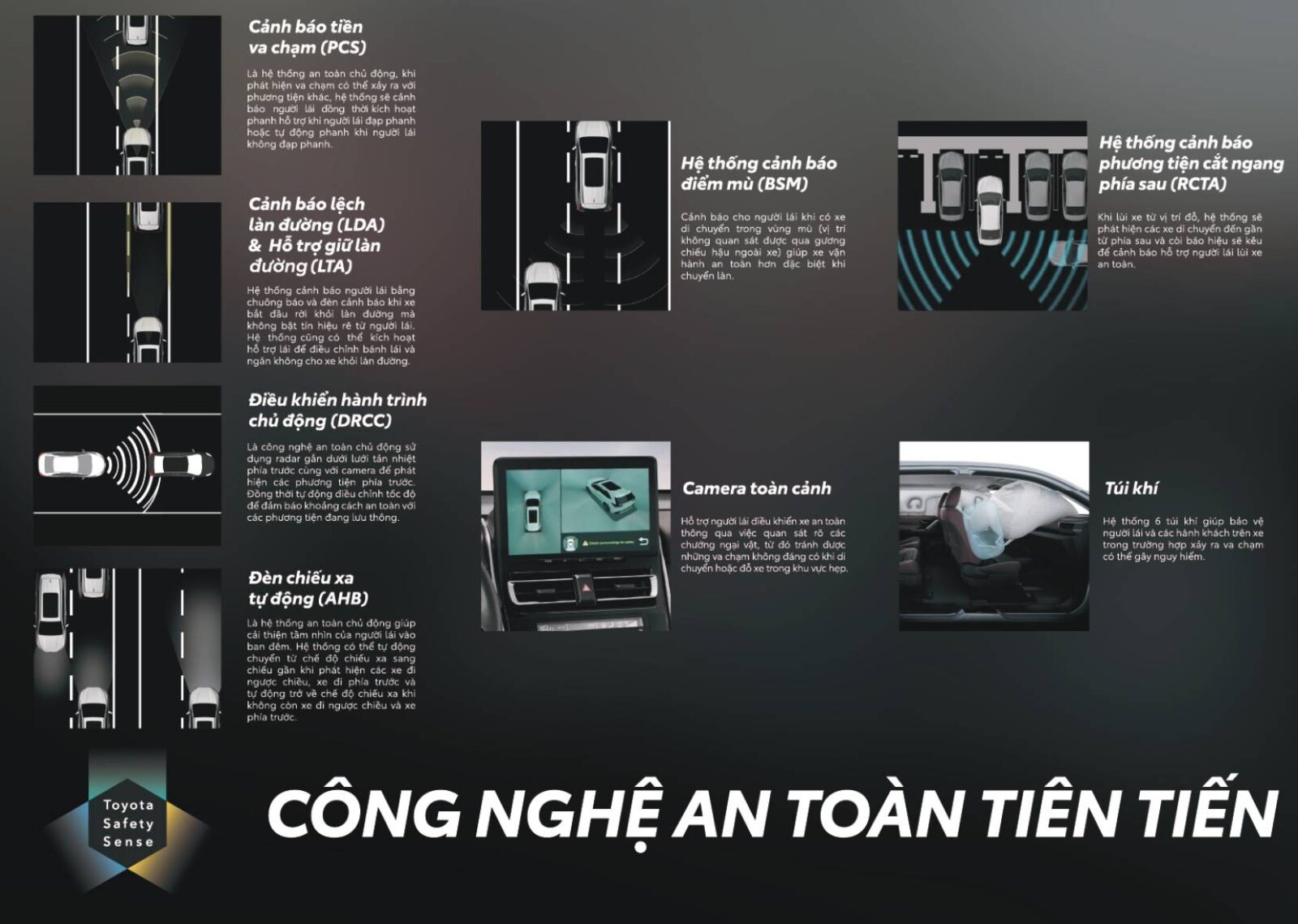 Hãng xe Nhật Bản trang bị hệ thống an toàn Toyota Safety Sense cho Innova Cross bản HEV, với những tính năng như cảnh báo tiền va chạm, cảnh báo chệch làn và hỗ trợ giữ làn, điều khiển hành trình thích ứng, đèn pha thích ứng tự động. Cảnh báo điểm mù, cảnh báo phương tiện cắt ngang phía sau. Bản máy xăng V không có những tính năng này.