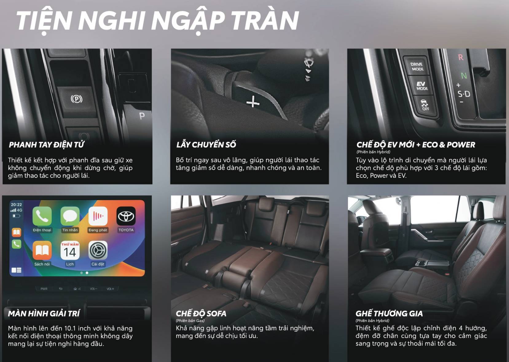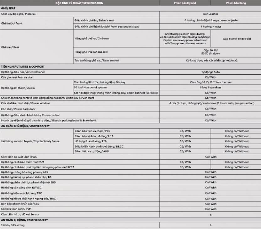 Chưa hết, trên bản hybrid còn cung cấp thêm 2 ghế thương gia ở giữa, có độ ngả và đệm chân chỉnh điện, mang đến trải nghiệm cao cấp cho hành khách. Hàng ghế cuối có thể gập hoàn toàn để gia tăng thể tích khoang hành lý khi cần chứa nhiều đồ.