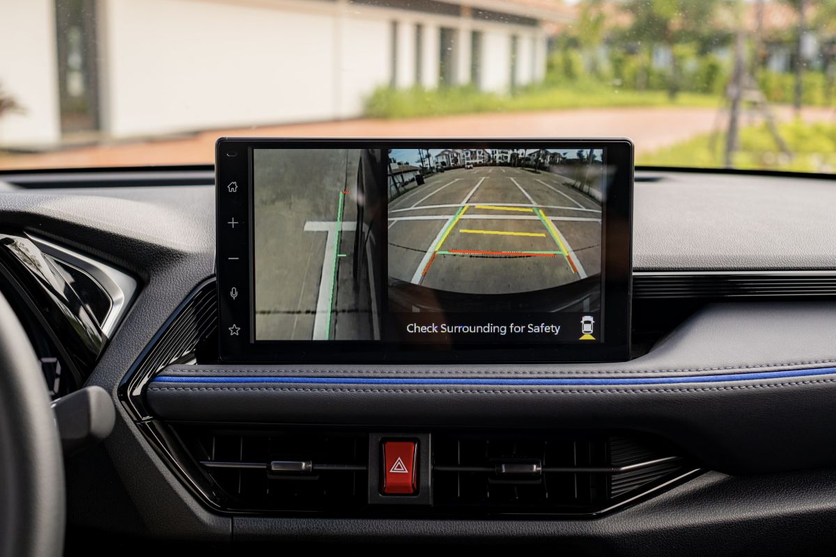 Yaris Cross trang bị gói an toàn chủ động Toyota Safety Sense như cảnh báo tiền va chạm, cảnh báo chệch làn và hỗ trợ giữ làn, đèn pha thích ứng, điều khiển hành trình thích ứng, cảnh báo phương tiện phía trước khởi hành, camera 360, cảnh báo điểm mù, cảnh báo phương tiện cắt ngang phía sau.